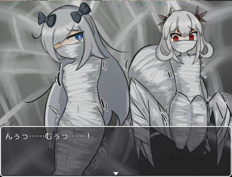 コマンド選択式の戦闘エロ、拘束特化のRPG。豊富な拘束と取り揃えており、ボリューム満点。マミフィケーションやラバー拘束や粘液拘束なども含まれている。